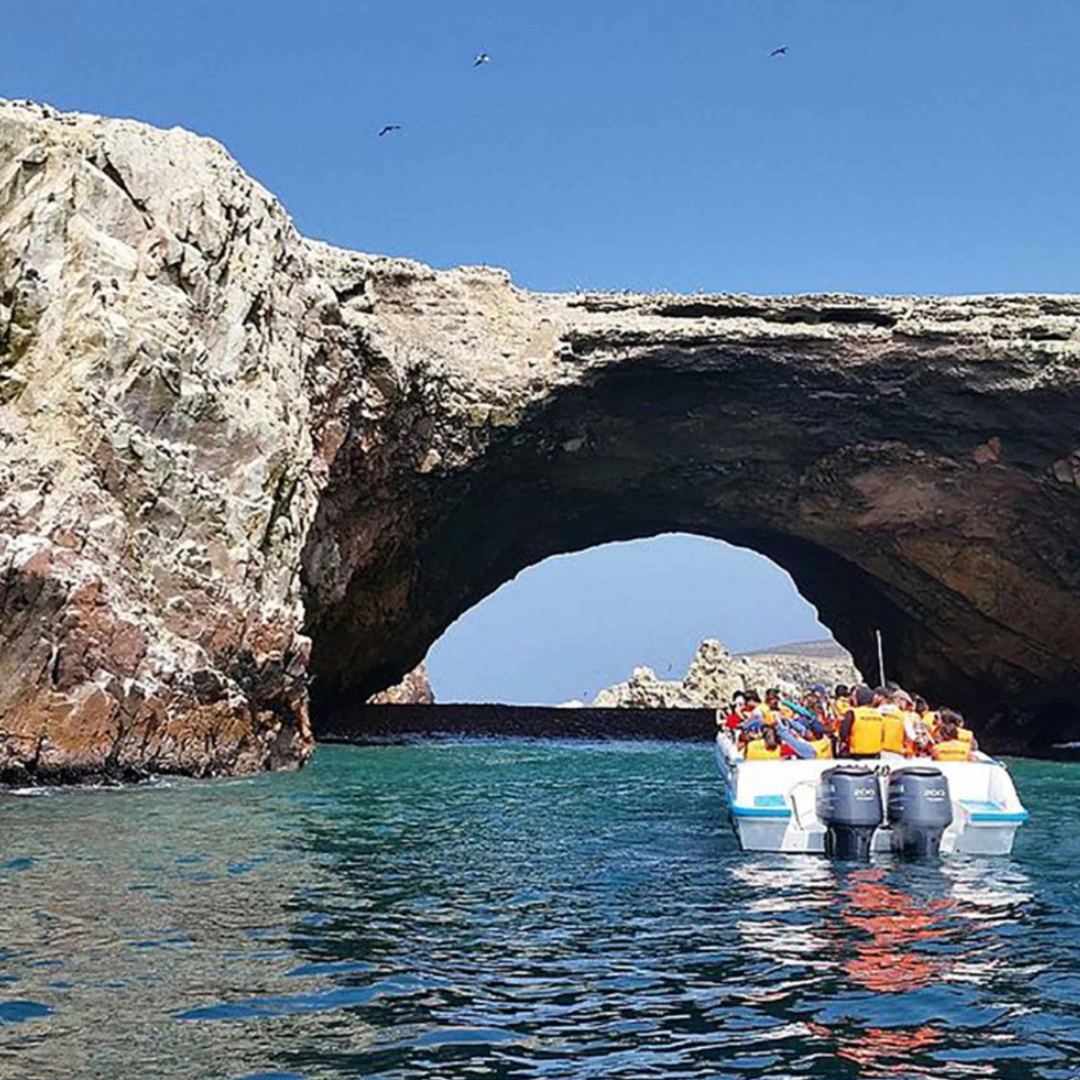 We board a motorboat to the Ballestas Islands. On the way, we’ll see the “Candelabro,” a large geoglyph carved into a sand hill. At sea, we’ll observe marine biodiversity including Peruvian boobies, Guanay and red-legged cormorants, pelicans, Humboldt penguins, sea lions, and dolphins. The tour lasts approximately 2 hours before returning to the private dock.